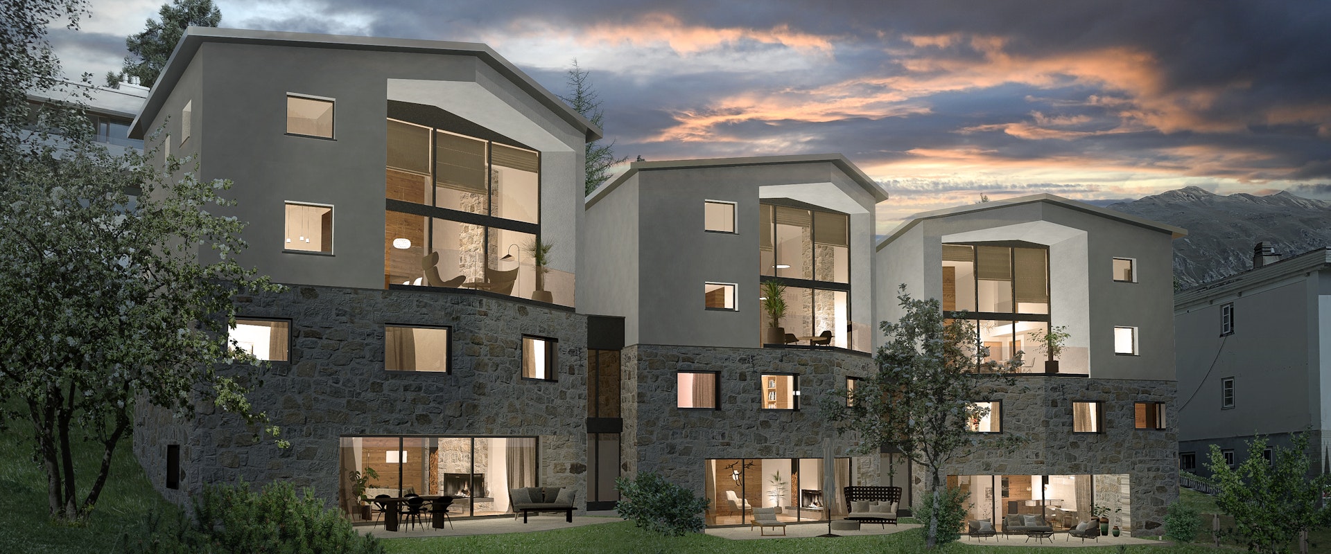 An idealer Lage über dem Dorfzentrum des als Wohn- und Ferienort geschätzten Samedan entstehen drei Architektenhäuser als Erst- oder Zweitwohnsitz mit rundum gehobenem Anspruch, grosszügigen Raumverhältnissen, tollen Terrassen und einer zauberhaften Weitsicht in die Berge.